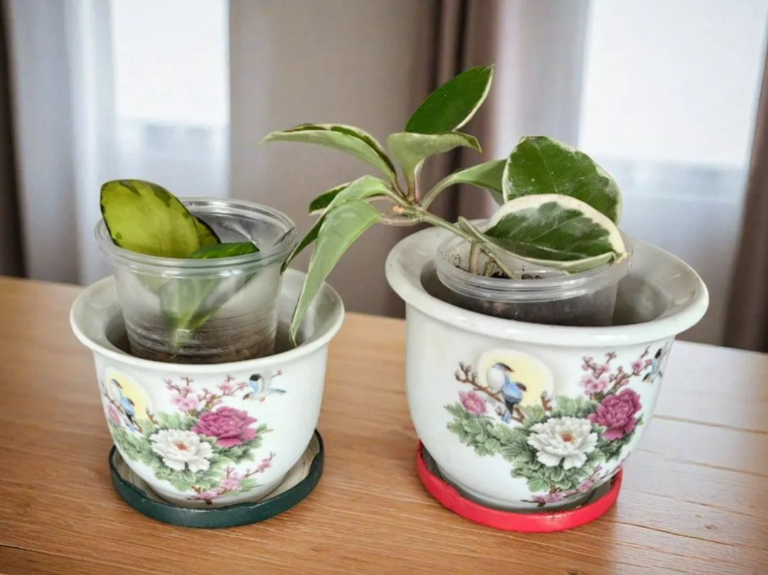 Как-то так повелось, что Хойи я не очень привечаю в своей домашней цветочной коллекции. У меня их не просто мало, а очень мало. И завела я их чисто по старой памяти. В детстве у нас на кухне росла огромаднейшая Хойя, которая оплела две стены кухни своими длинными плетями, очень часто цвела и капала сладким нектаром)) В этот свой цветочный заход я углядела пока всего три сорта, которые мне понравились. В них нет ничего необычного, но мне они нравятся). Первыми прибыли в середине июля Кримсон Квин и Лиза Аустралис. Вот такими они были, когда только приехали. Зимовали они на рассадном стеллаже под лампами. Их уронили коты, вместе с другими растениями. но сильно они не пострадали. Зимой рост очень замедлился, не смотря на досветку. Так что очень сильно они не выросли. Но немножко подросли в своих маленьких горшочках) В этом году хочу их размножить. попробую почеренковать и высадить более густой кучкой в один горшок. Пока что у меня нет планов использовать их в композициях. Но возможно это