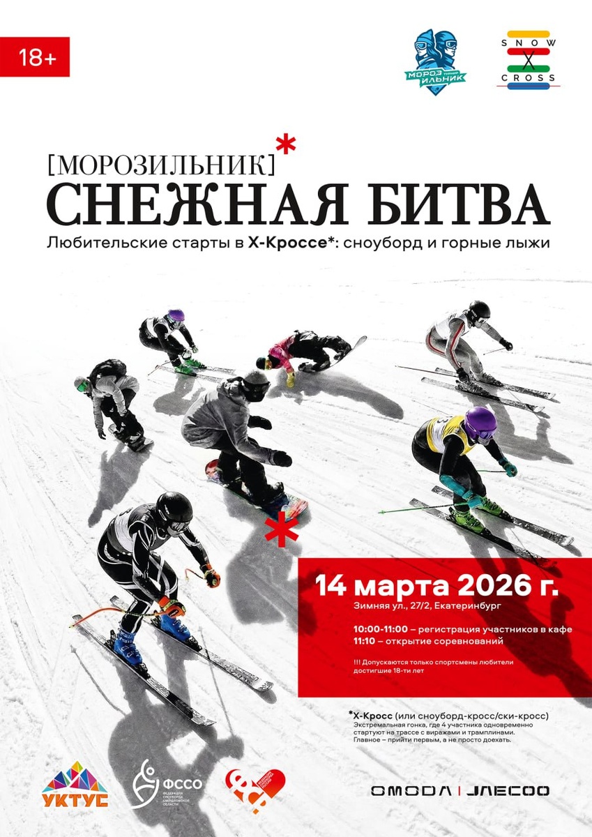 ! Приглашаем всех спортсменов-любителей принять участие в зимних соревнованиях на трассе «сноуборд-кросс». Проверим свои силы в дружеской, но азартной борьбе! 🗓 Дата: 14 марта 2026 🏁 Место: г. Екатеринбург, Зимняя ул., 27/2 ПРОГРАММА МЕРОПРИЯТИЯ: 📍 10:00 – 11:00 — Регистрация участников (в кафе Лысая гора). 📍 10:30 – 11:00 — Разминка, раскатка на склоне «Лысая». 📍 11:10 – 11:15 — Торжественное открытие. 📍 11:20 – 11:40 — Осмотр трассы. 📍 11:40 — Старт квалификационных заездов. ДИСЦИПЛИНЫ И КАТЕГОРИИ: · Сноуборд: Мужчины / Женщины · Горные лыжи: Мужчины / Женщины УСЛОВИЯ УЧАСТИЯ: ✔️ Возраст: 18+ ✔️ Уровень: только любители (лицензии профессиональных спортшкол не принимаются). ✔️ На регистрации ОБЯЗАТЕЛЬНО иметь при себе: 1. Паспорт (или документ, удостоверяющий личность). 2. Оригинал полиса спортивной страховки (действующей на день соревнований). 3. Шлем Не откладывайте подготовку на последний момент! Проверьте наличие страховки и приходите бороться за победу! 📌 Екатери