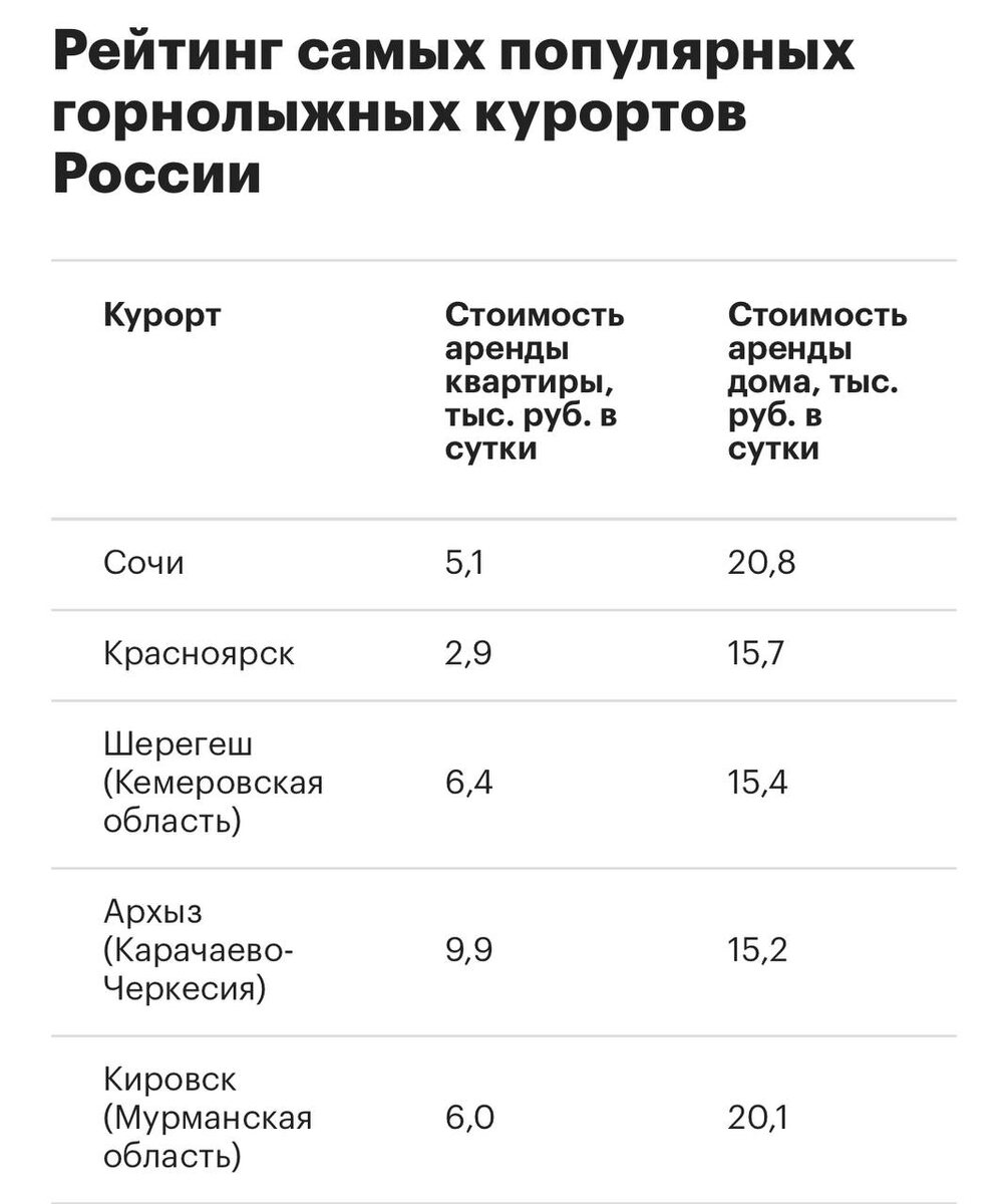 ? ⛷️ Самые популярные горнолыжные курорты в этом году — Сочи, Красноярск и Шерегеш. Данные оценивали по числу бронирований квартир и домов на короткий срок. Есть также ряд курортов, к которым интерес за год значительно вырос. В Красноярске число бронирований выросло на 46%, Губах (Пермский край) + 36%, Южно-Сахалинск +30%. 💸 Стоит ли принять во внимание возрастающий туризм как маячок будущей прибыли и снять сливки? Рассмотрим в сравнении с югом. Здесь спрос на недвижимость поддерживается не за счет туриндустрии как таковой, а за счет факторов, благодаря которым эта туриндустрия там и появилась: прямой доступ к морю, лучший в стране климат, живописные ландшафты, развитая санаторно-оздоровительная инфраструктура и т.д. В случае Кировска, Шерегеша или Красноярска с его Бобровым Логом туризм не поможет. Во-первых, недвижимость для частного проживания на таких курортах, если и есть, то в основном представлена либо гостиничными номерами, либо форматами, которые максимально к ней приближ