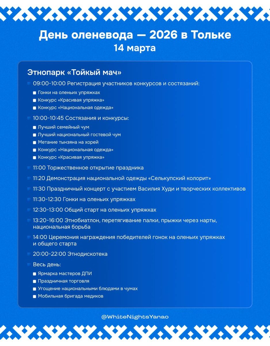 В селе Толька 14 марта празднуют День оленевода. Он пройдет в этнопарке «Тойкый мач».