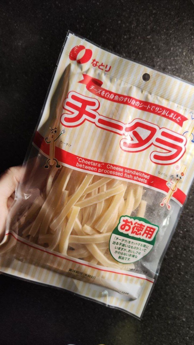 🇯🇵 Такую вкусняшку мы еще не пробовали🐾 Это прям очень сытный снек, даже лучше чипсов или сухариков, потому что это прям еда-еда, как я люблю👋 Что это такое, я узнала через google переводчик, потому что японский или китайский язык не изучала. А вот все, что на английском я поняла прекрасно. Читара - это сырный сэндвич заключенный между двумя пластами рубленой рыбы. Палочки практически одинаковые, чуть больше палочек сыра чечил. Визуально отлично видно - где сыр, а где рыбка. По аромату так же чувствуется рыбка. По вкусу очень напоминает наш сыр сулугуни, либо белую не копчёную косичку. На послевкусие подключается рыбный вкус, мне больше напомнило вкус кальмара. Но, возможно, и рыбы, потому что в составе написано - белая рыбка😑 Снек очень сытный. Если найдете - попробуйте. Японская еда - всегда удивление.😇 #Рекомендосьен #десерт #обзореды #вкусняшка #сладкоежка #фудблог #фудобзор #япония
