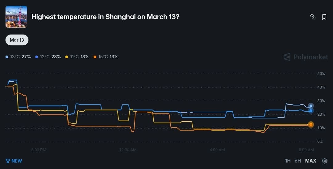 🔸Polymarket запускает рынки предсказаний погоды для Шанхая и Гонконга