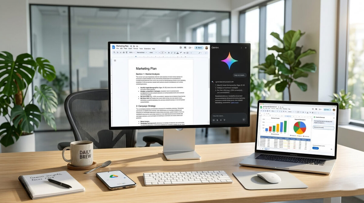 Google только что представил серьёзные изменения в своих рабочих приложениях. Искусственный интеллект Gemini теперь глубже интегрируется в Docs, Sheets, Slides и Drive. Платные подписчики планов Google AI Ultra и Pro, а также участники программы Gemini Alpha для бизнеса получают доступ к этим возможностям первыми. Обновления начинаются на английском языке и постепенно распространяются дальше. Такие шаги заметно меняют привычный порядок работы. Вместо долгой рутины по сбору данных и форматированию появляется настоящий помощник, который понимает контекст и предлагает готовые решения. Многие люди раньше тратили часы на то, чтобы просто начать документ или таблицу. Теперь процесс ускоряется в несколько раз, и внимание можно уделять главным идеям.
