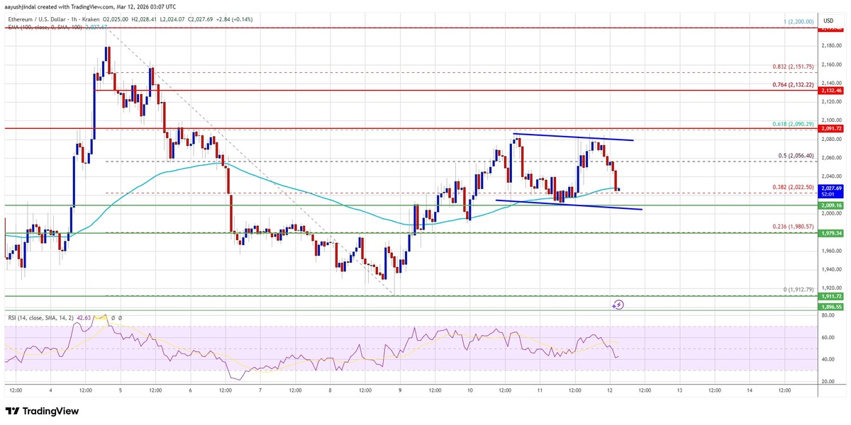 📈 После восстановления выше $2,020, Ethereum испытывает трудности с преодолением уровня $2,080, что указывает на повышенный риск снижения в ближайшем будущем. Медведи активно защищают этот уровень, не давая цене закрепиться выше. 📊 Ключевые моменты: - Сопротивление: Ключевое сопротивление на $2,080 (61.8% Фибо откат), далее $2,135 и $2,150. Прорыв $2,150 может открыть путь к $2,200. - Поддержка: Непосредственная поддержка на $2,000, далее $1,980. Пробой $1,980 может привести к падению до $1,910 и $1,880. - Технические индикаторы: MACD набирает медвежий импульс, RSI ниже 50, что усиливает нисходящие настроения. ⚠️ Риски: Высокий риск падения, если ETH не сможет удержаться выше $2,000 и преодолеть $2,080. Горизонт: краткосрочно