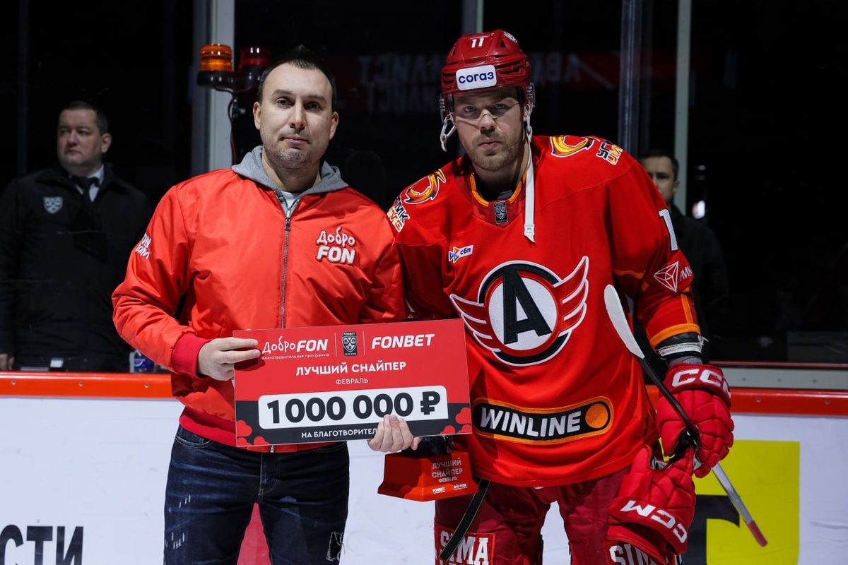 Каждая его шайба в феврале — это не только вклад в победы команды, но и вклад в Добро. От программы ДоброFON Даниэлю вручили специальный приз и чек на 1 000 000 рублей на благотворительные цели. В феврале все команды забросили 545 шайб, а это значит, что 545 000 рублей будут перечислены в Федерацию адаптивного хоккея России на развитие всех его дисциплин.