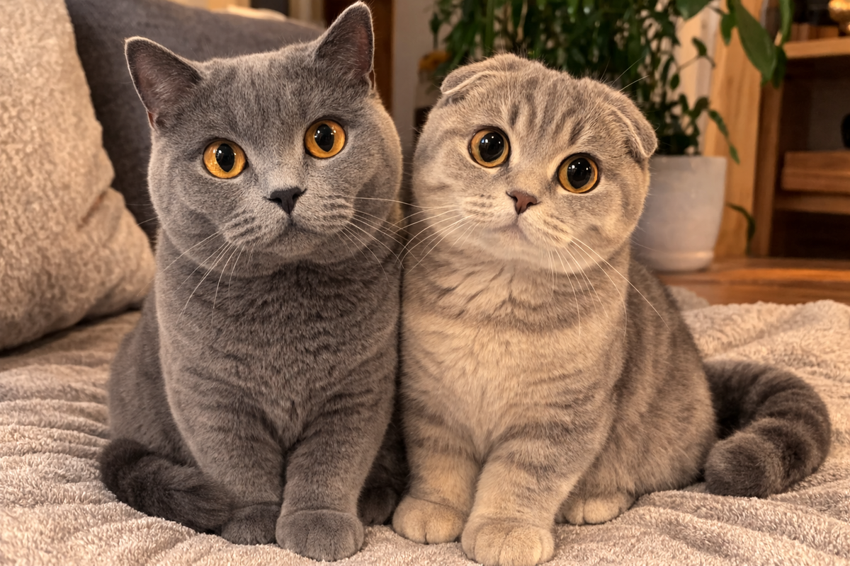 Эти две породы часто путают. Круглая мордочка, плотная шерсть, спокойный взгляд - на фотографиях они выглядят почти одинаково. Обе кажутся "плюшевыми" и очень уравновешенными. Поэтому многие будущие владельцы уверены: характер у них тоже почти одинаковый. Но в реальной жизни всё оказывается немного сложнее. Одинаково ли легко жить с британской короткошёрстной и шотландской вислоухой - или разница всё‑таки есть? Разберём по нескольким важным моментам, которые сильнее всего влияют на повседневную жизнь с кошкой. Характер и темперамент Британская короткошёрстная Эта кошка известна своей самостоятельностью. Она спокойная, уравновешенная и независимая. Британцы любят находиться рядом с хозяином, но иногда не готовы к постоянному вниманию. Довольно часто они предпочитают лежать в сторонке и просто наблюдать. Шотландская вислоухая Шотландцы обычно мягче по характеру. Они сильнее привязываются к хозяину и чаще ищут контакт: приходят рядом посидеть, могут следовать за человеком по квартире. И