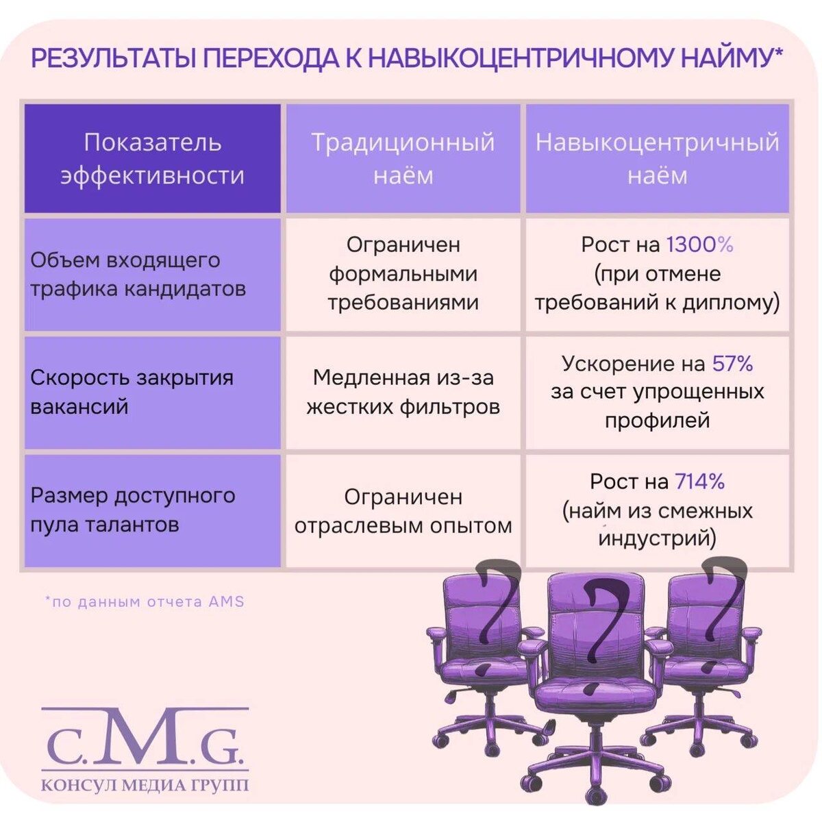 В 2026 году рынок труда характеризуется устойчиво низкой безработицей (2,2 %) и системным дефицитом специалистов рабочих профессий. В таких условиях компании вынуждены пересматривать традиционные методы подбора персонала. Один из наиболее перспективных инструментов - навыкоцентричный подход к найму. Суть метода - в смещении фокуса с формальных критериев (диплом, опыт работы в конкретной отрасли) на реальные навыки и компетенции кандидата. Например, соискатель без профильного диплома, но с релевантными умениями, может оказаться ценнее кандидата, который соответствует стандартным фильтрам, но не обладает нужными практическими навыками. Такой подход решает несколько ключевых проблем: Когда компания сталкивается с нехваткой специалистов, можно действовать по следующей схеме: 1. Анализ и корректировка фильтров вакансии 2. Запуск таргетированной рекламы 3. Оценка потенциала кандидатов Навыкоцентричный подход уже активно используется в производственных отраслях: проверка практических навыко