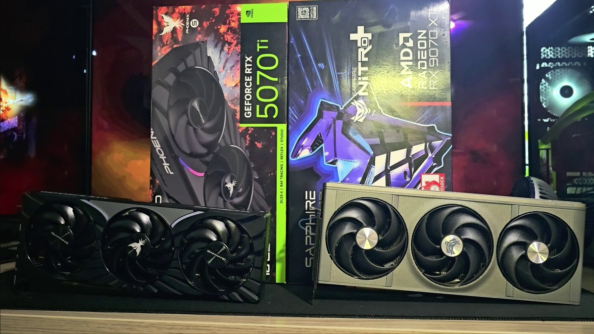 Энтузиаст YouTube-канала Bang4BuckPC Gamer сравнил возможности видеокарт AMD Radeon RX 9070 XT и Nvidia GeForce RTX 5070 Ti в ряде игр, опубликовав свежее видео с результатами тестов. Источник фото: Bang4BuckPC Gamer/YouTube Кроме указанных видеокарт, тестовая сборка включала в себя процессор AMD Ryzen 9 9950X3D и 2x32 ГБ оперативной памяти DDR5-6000 CL30. В разрешении 4K видеокарта GeForce RTX 5070 Ti обогнала Radeon RX 9070 XT по средней частоте кадров в следующих играх: В свою очередь, Radeon RX 9070 XT была чуть быстрее GeForce RTX 5070 Ti лишь в одной игре при разрешении 4K: По результатам тестов в указанных играх видно, что GeForce RTX 5070 Ti выигрывает у Radeon RX 9070 XT в быстродействии. При этом за модель Nvidia придётся заплатить как минимум на 300 долларов больше. Удачливый покупатель приобрёл RTX 5070 Ti за пятую часть её реальной цены Пользователь купил RTX 5070 Ti и получил в посылке упаковку с камнями AMD Radeon RX 9070 XT и RX 9060 XT заметно обогнали модели Nvidia по