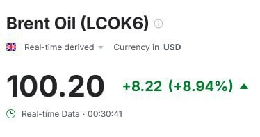 Стоимость одного барреля нефти марки Brent на торгах опять взлетела за отметку 100 долларов