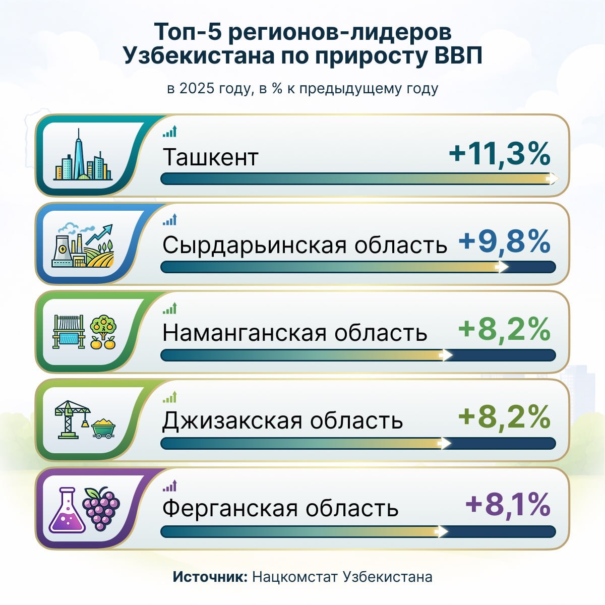 Объем ВВП страны в 2025 году в текущих ценах составил 1 849,7 трлн сумов, согласно предварительным данным Нацкомстата. Он увеличился на 7,7% по сравнению с 2024 годом.