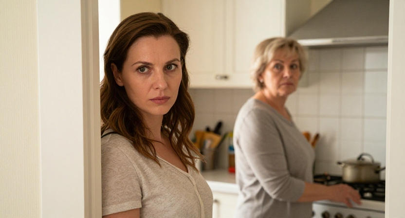 Свекровь обернулась от плиты медленно, с той особой степенностью, которая давалась ей без усилий — как будто она всю жизнь тренировалась смотреть на людей сверху вниз. На её лице не было ни тени смущения. Только лёгкое раздражение человека, которого оторвали от важного занятия ради какой-то ерунды.