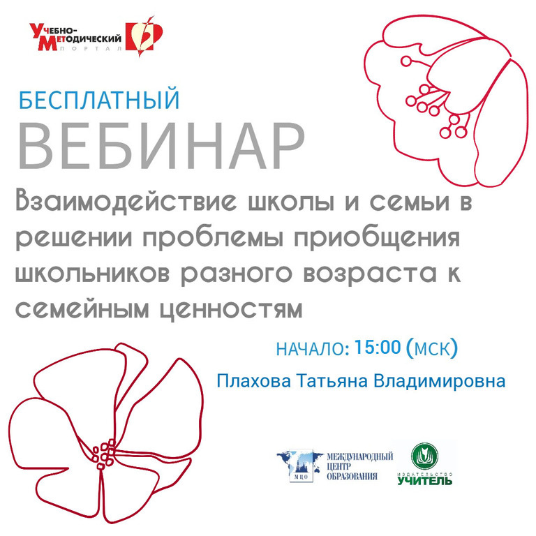 » Дата проведения: 13.03.2026 Начало: 15:00 (МСК) https://www.uchmet.ru/events/item/4079819/ На вебинаре актуализируются проблема взаимодействие школы и семьи в решении проблемы приобщения школьников разного возраста к семейным ценностям. Содержательные вопросы вебинара: 1. Проблемное поле вебинара: - потеря нравственных ценностей - основная причина семейного кризиса; - кризис в системе взаимодействия социальных институтов. 2. Актуальность и правовые основы. 3. Общая стратегия взаимодействия семьи и школы в воспитании подрастающего поколения: воспитательные цели и задачи; приоритетные направления. 4. Традиционные семейные ценности как основа формирования культуры современного общества и личности. 5. Сопровождение и поддержка семьи со стороны школы в решении проблемы приобщения школьников разного возраста к семейным ценностям: - образование родителей, - приобщения школьников к семейным ценностям в рамках Федеральной Программы внеурочной деятельности - эффективные средства и формы