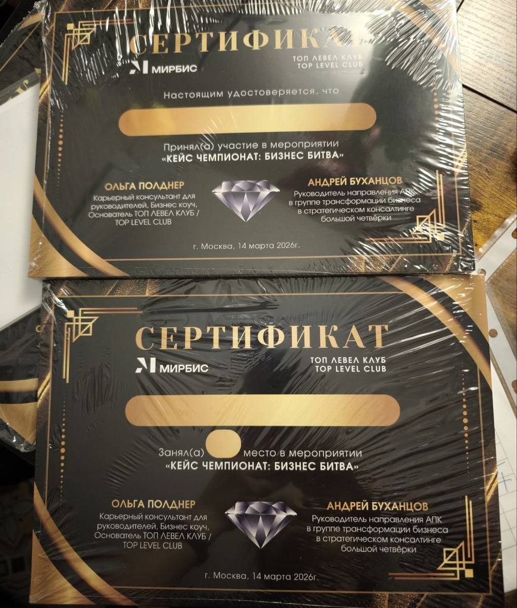 Приехали сертификаты для участников и победителей КЕЙС ЧЕМПИОНАТА