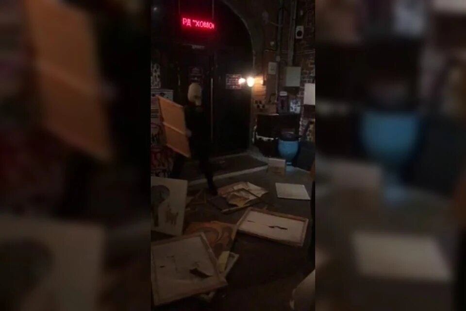 Тем же вечером в группе появились видеоролики, снятые гостями мероприятия. На кадрах группа молодых людей в черной одежде в балаклавах и противогазах срывают со стен заведения картины и рубят полотна. В комментариях самарцы сразу заподозрили что-то неладное.