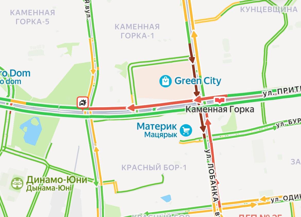 ❗️ГАИ: из-за ДТП на пересечении ул. Неманской и Притыцкого затруднено движение по ул. Притыцкого со стороны ул. Кунцевщина в направлении ул. Неманской