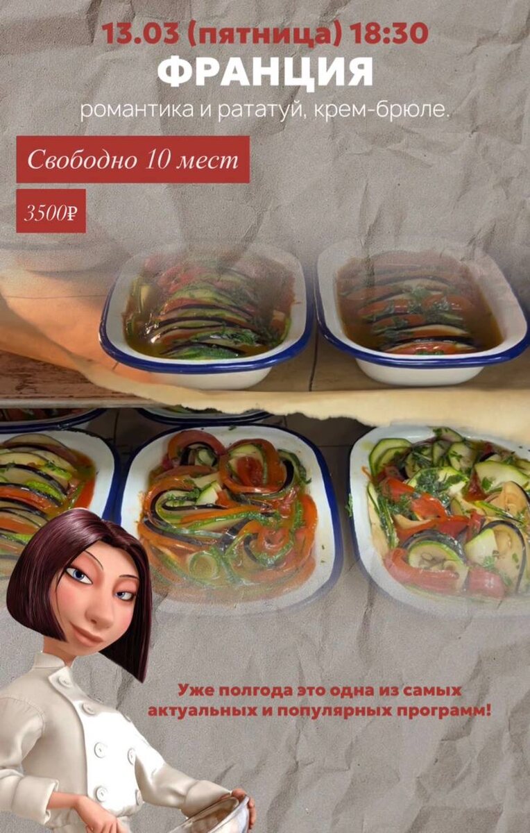 ? 🍳 Тогда советуем посетить мастер-классы в кулинарной студии Ксении Чапаевой!) #идёмплатно 13, 14 и 15 марта (запись через @kitchen_studio_admin) Если вы давно мечтали научиться готовить... как настоящий шеф-повар, то скорее ознакомьтесь с расписанием и забронируйте местечко для себя) ✍️На мастер-классах приготовим: — рататуй и крем-брюле; — драники с лососем; — домашние ватрушки с творогом и многое другое. Не забудьте подписаться на наш канал в MAX❤️