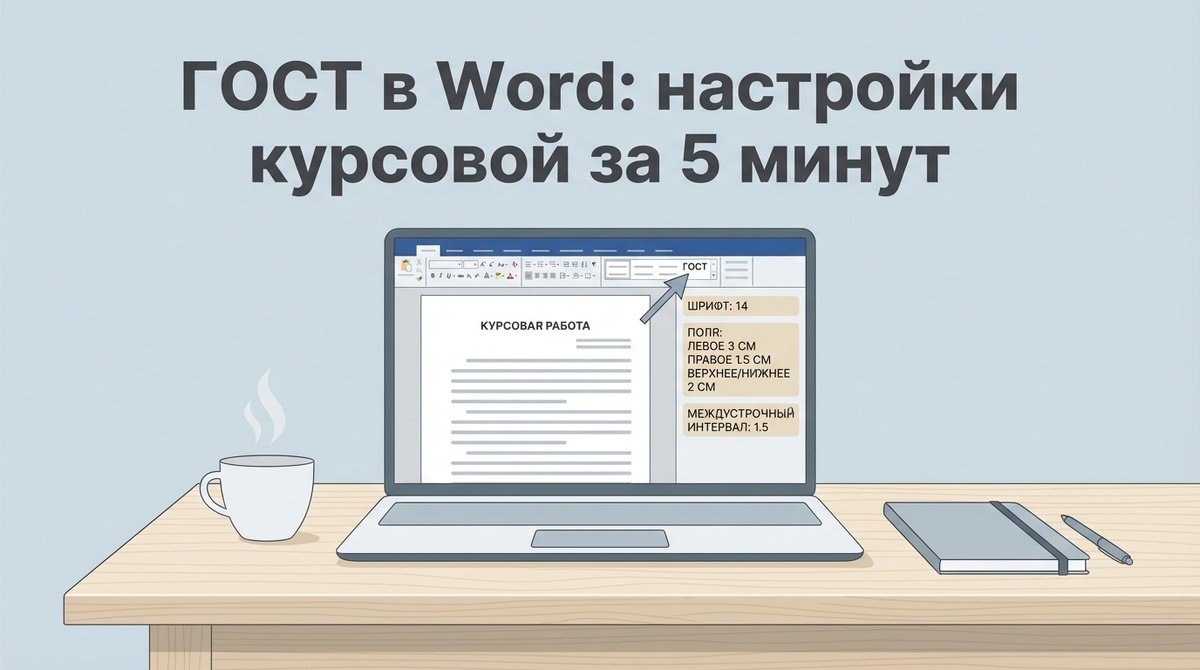 Microsoft Word создавался не для российских вузов. Его настройки по умолчанию — это Calibri 11, одинарный интервал и какие-то поля, которые никто не согласовывал с ГОСТом. Преподаватель открывает такой документ и сразу видит: студент ничего не настраивал.