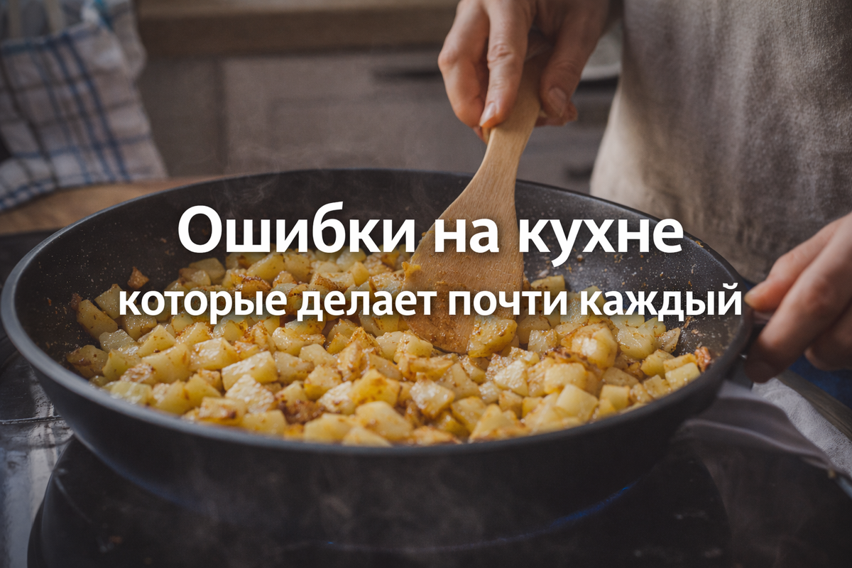 Иногда мы готовим так, как привыкли с детства. Многие вещи передаются из семьи. Но часть кухонных привычек на самом деле делают еду хуже. Иногда блюдо получается суше. Иногда пропадает вкус. А иногда мы просто тратим лишнее время. Я собрала несколько таких привычек. Интересно узнать, какие из них есть у вас. Ошибка 1. Мясо сразу кладут на холодную сковороду Многие кладут мясо на сковороду и только потом включают огонь. В итоге мясо начинает медленно выпускать сок и тушится вместо того, чтобы жариться. Лучше сначала хорошо разогреть сковороду. Потом добавить немного масла и только после этого класть мясо. Тогда появляется румяная корочка и вкус получается насыщеннее. Ошибка 2. Часто мешают картошку при жарке Когда жарят картошку, многие постоянно её перемешивают. Каждые 20–30 секунд. Из-за этого картошка не успевает подрумяниться. Она начинает ломаться и становится мягкой. Лучше перемешивать реже. Дать картошке спокойно поджариться несколько минут. Тогда она получится золотистой и краси