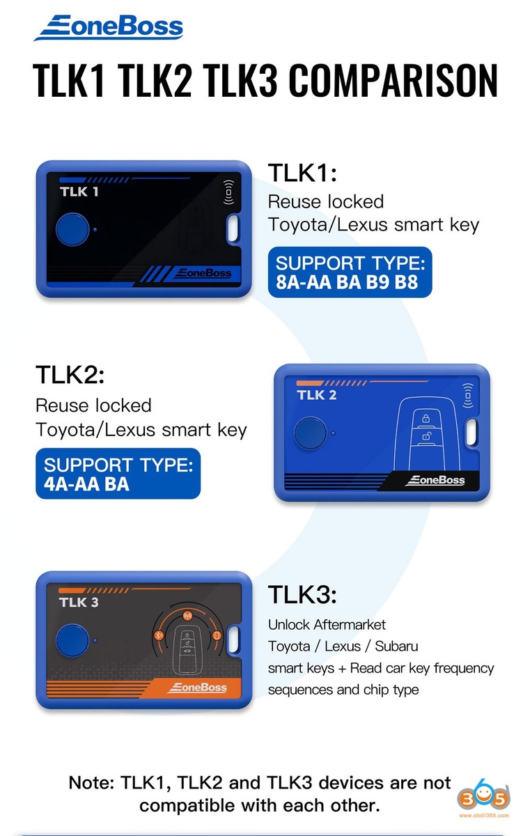 📰 Car Key Programmer Blog Устройства EoneBoss TLK1, TLK2 и TLK3 отличаются по функционалу. TLK1 и TLK2 поддерживают повторное использование заблокированных оригинальных смарт-ключей Toyota и Lexus определённых типов. TLK3 предназначен для разблокировки смарт-ключей Toyota, Lexus и Subaru, продающихся на вторичном рынке. Кроме того, TLK3 автоматически определяет частоту, последовательность и тип чипа оригинального ключа, а также собирает сигналы с катушки зажигания автомобиля для точного определения параметров ключа. Все устройства независимы и несовместимы друг с другом. Выбор модели зависит от потребностей бизнеса. 🔗 Читать полностью #новости #автодиагностика #автоключи #autel #bmw #canbus #lexus #smartkey #subaru #toyota #программирование