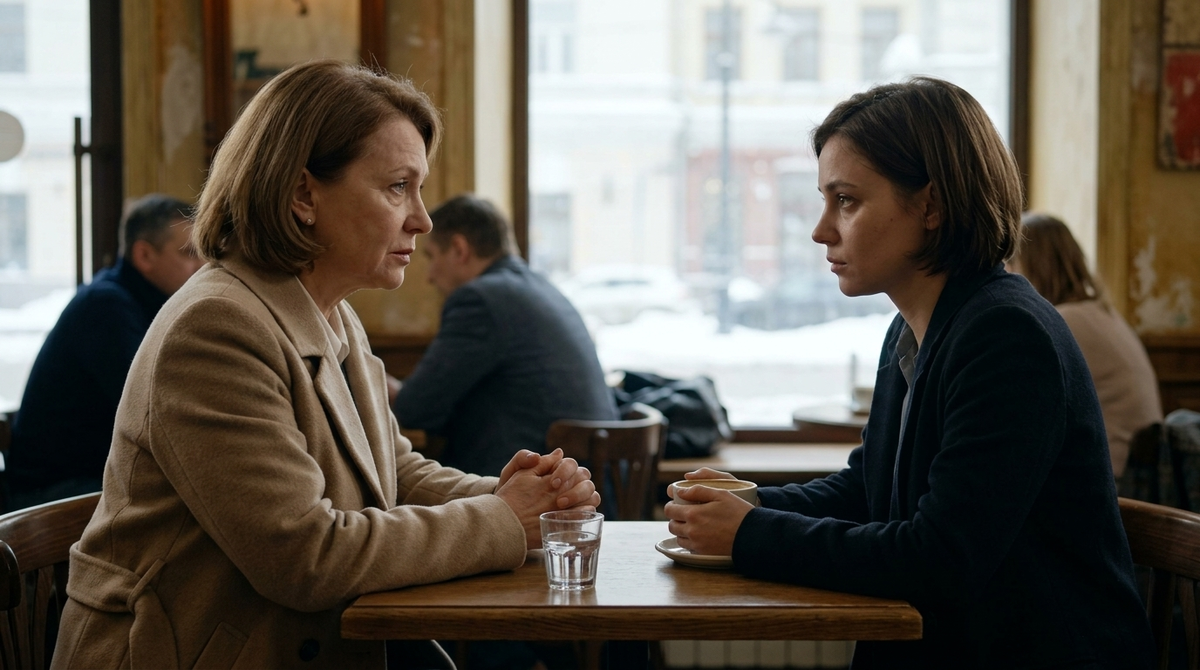 Они встретились в кафе возле дома свекрови. Галина Сергеевна уже сидела за столиком — прямая, в своём обычном бежевом пальто. Но что-то в ней было другим. Что-то более тихое.