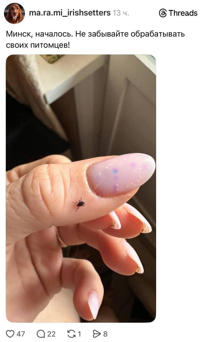 Жители района Дражня делятся в сети фотографиями насекомых. Специалисты напоминают: во время прогулок в парках и лесных зонах стоит быть внимательными и использовать защиту от клещей. ✔️ Минскач • Подписаться