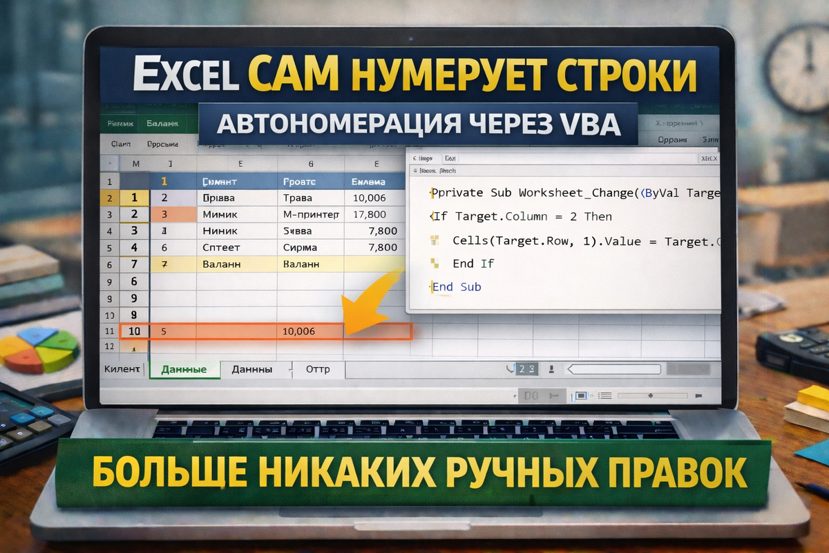 Автоматическая нумерация строк в Excel — макрос, который работает сам. Разбираем практическое VBA-решение: как сделать автоматическую нумерацию строк в Excel. Номер строки появляется сам при вводе данных. Любая рабочая таблица со временем становится живым организмом.