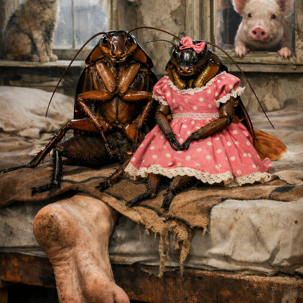 Егор начал восхождение. Для него пятка Клавдии была величественным плато, испещренным каньонами морщин и кратерами мозолей. Он чувствовал вибрацию её храпа — низкий, утробный звук, от которого дребезжали стаканы в серванте. Таракан добрался до цели. Его жвалы мягко вонзились в ороговевший слой кожи.