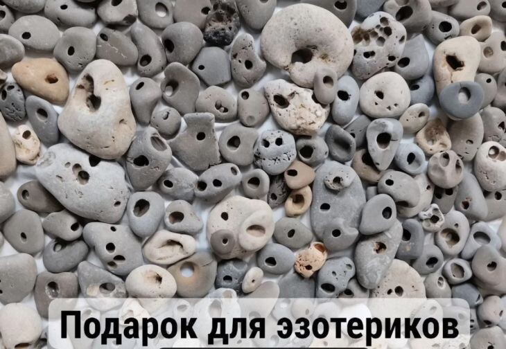 Продавец уверяет: каждый камень редкий и найден лично им за 16 лет прогулок по берегу Чёрного моря. Общий вес «основного лота» — 15,2 килограмма. Некоторые экземпляры — с двумя и даже тремя отверстиями. Почти премиум среди камней.
