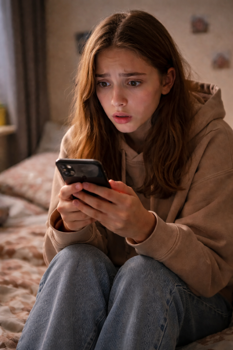 Ксюша сидела на кровати, поджав под себя ноги. В комнате было тихо, только настольная лампа мягко освещала стол, телефон в руках светился холодным голубым светом.