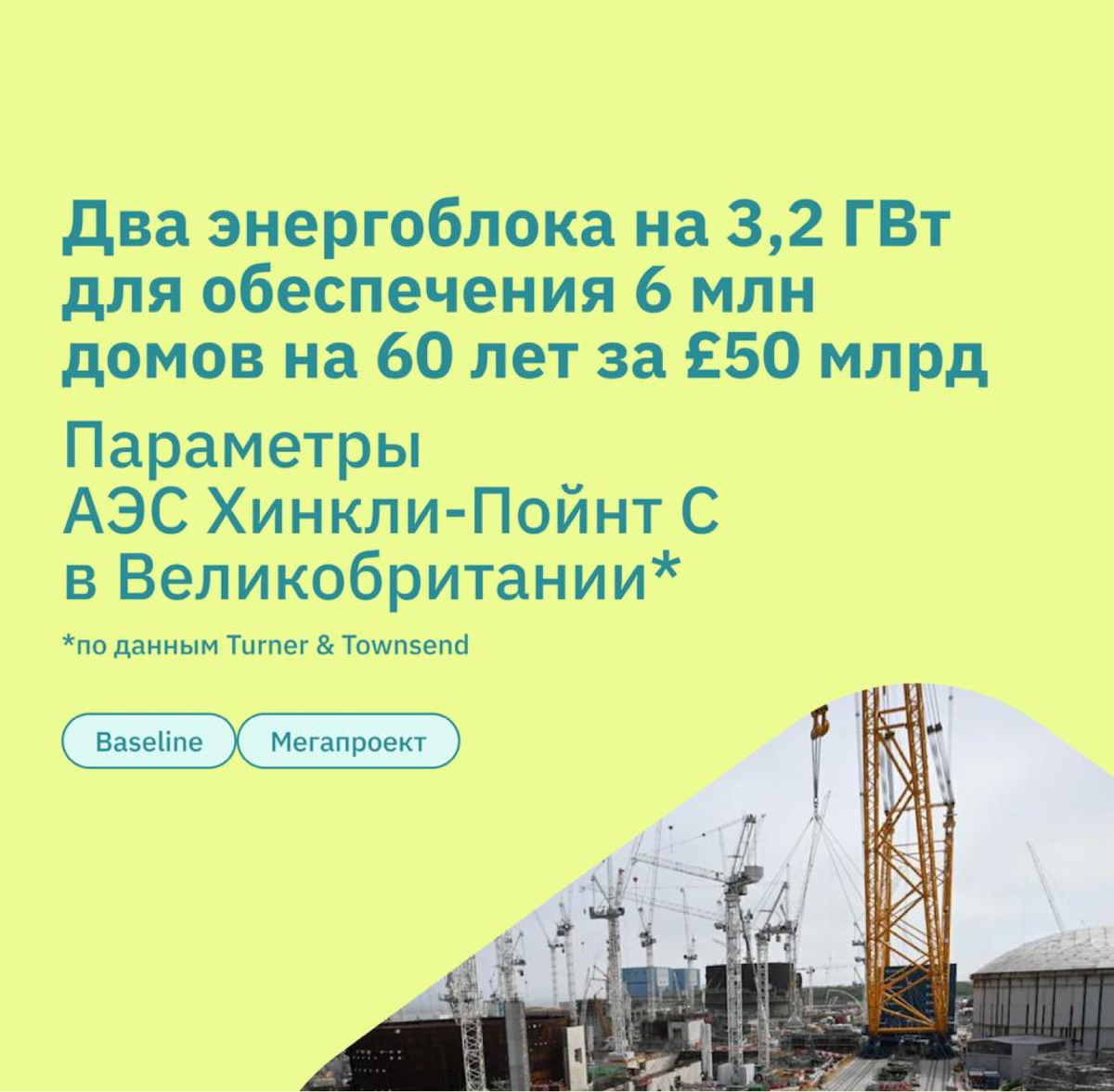 Два реактора нового поколения, 3200 МВт мощности и электроэнергия для миллионов домов — в Великобритании строят крупнейшую атомную станцию последних десятилетий. АЭС Hinkley Point C станет первой новой атомной электростанцией, построенной в Великобритании более чем за 30 лет. Проект предусматривает строительство двух реакторов типа EPR (European Pressurized Reactor), которые суммарно смогут вырабатывать около 3200 МВт низкоуглеродной электроэнергии — этого достаточно, чтобы обеспечить электричеством примерно 6 млн домохозяйств в течение как минимум 60 лет. Строительство станции началось около десяти лет назад. Первоначально ввод в эксплуатацию планировался к 2025 году, однако сроки сдвинулись примерно до 2030 года, а стоимость проекта выросла с примерно £18 млрд до почти £50 млрд. Основными причинами называют сложности строительства масштабной инфраструктуры и рост стоимости материалов и работ. Проект реализует французская энергетическая компания EDF, которая выступает основным девелоп