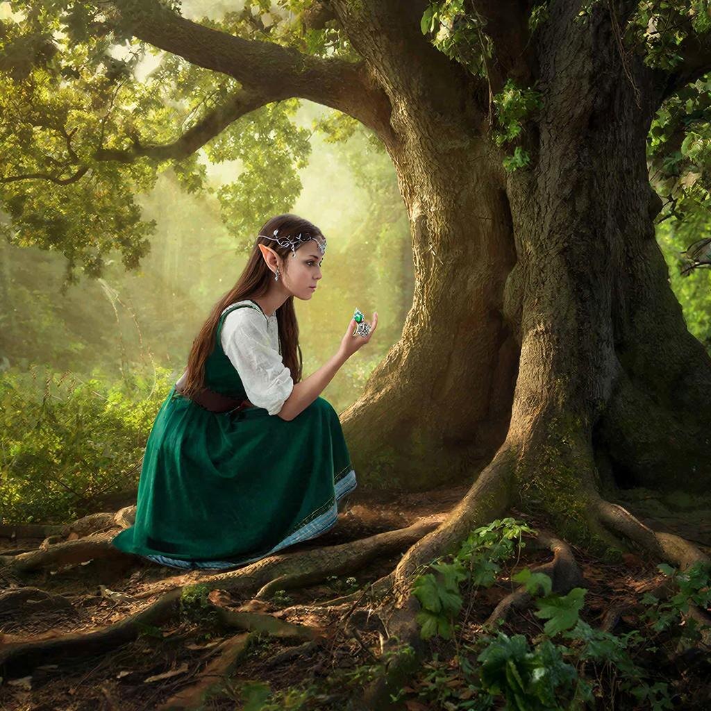 Однажды утром, когда прохладный туман медленно поднимался над лесом, она наткнулась на странный сверкающий предмет, застрявший между корнями старого дуба — тонкое серебряное кольцо, украшенное зелёным изумрудом. В кольце таилась древняя магия, едва заметная, но ощутимая как лёгкое биение сердца.