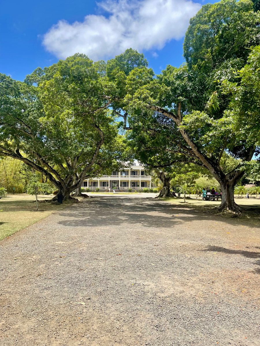 Вид с террасы открывается такой, что хочется сесть и не уходить. Зелень, небо, легкий ветер. Красиво. Душевно. Настоящий кусочек колониальной истории.