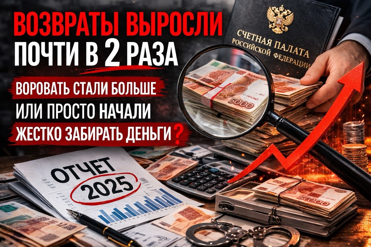 Возвраты выросли: воровать стали больше или государство просто стало жестче забирать деньги назад? После выхода отчета Счетной палаты за 2025 год многие сделали почти автоматический вывод: если объем возвратов в бюджет резко вырос, значит, и масштабы злоупотреблений стали больше. Логика понятная, но не такая простая. Цифры действительно впечатляют. По итогам 2025 года экономический эффект от работы Счетной палаты составил 653 млрд рублей. Из них 294,1 млрд рублей — это возвраты и взыскания денежных средств в бюджеты всех уровней и в пользу организаций с госучастием. Для сравнения: в 2024 году сумма возвратов составляла 95,9 млрд рублей. Рост — более чем в 3 раза. Причем сам отчет называет это самым высоким показателем за всю историю ведомства. На этом фоне легко сказать: «Стали больше воровать». Но формально отчет говорит о другом. Он фиксирует не только нарушения, но и усиление самого механизма возврата денег. Счетная палата прямо показывает, за счет чего сформировался этот результат