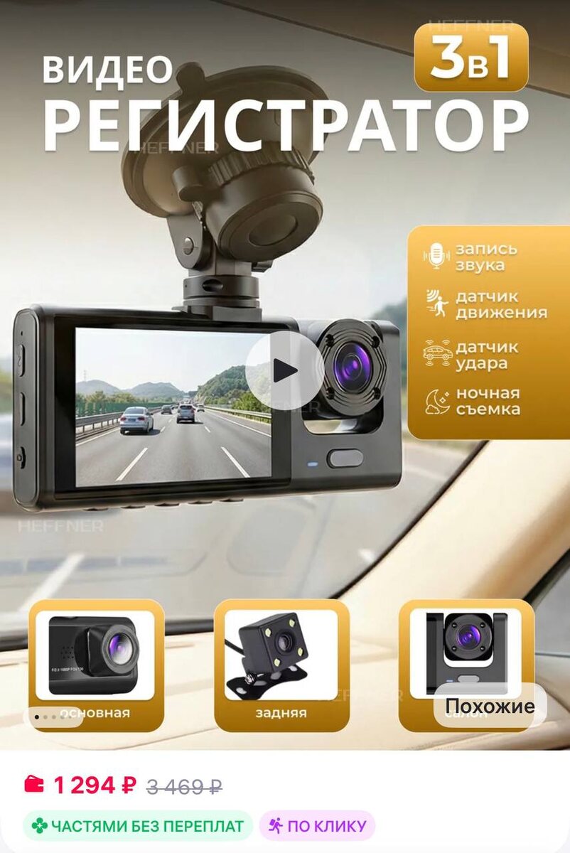 HEFFNER Видеорегистратор для автомобиля 3 в 1 с камерой заднего вида