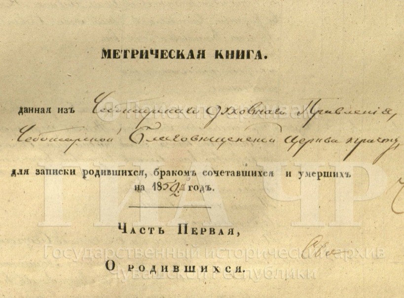 Метрические книги о рождении, браке и смерти. ГИА Чувашской Республики (ГИА ЧР), фонд № 225, опись № 3, дело № 121, стр. 189 скан. Метрическая книга, данная из Чебоксарского духовного Правления Чебоксарской Благовещенской церкви причту, для записки родившихся, браком сочетавшихся и умерших на 1852 год. Часть первая. О родившихся. Стр. 208 скан. Июль. № 13. 1 числа родился. 4 числа крещен. Андрей. Родители: Чебоксарский мещанин Афанасий Петров Давидов и законная жена его Мария Климентова, оба православного вероисповедания. Восприемники: Чебоксарский мещанский сын Яков Климентов Абалымов и умершего Чебоксарского мещанина Андрея Тихонова Скворцова жена вдова Мария Константинова. Крещение совершил протоиерей Андрей Скарабевский. Дьячек Василий Тимяшевский. Пономарь Даниил Тимяшевский. https://yandex.ru/archive/catalog/7363531c-97d0-4fcf-aa5b-3c9ef681999c/351