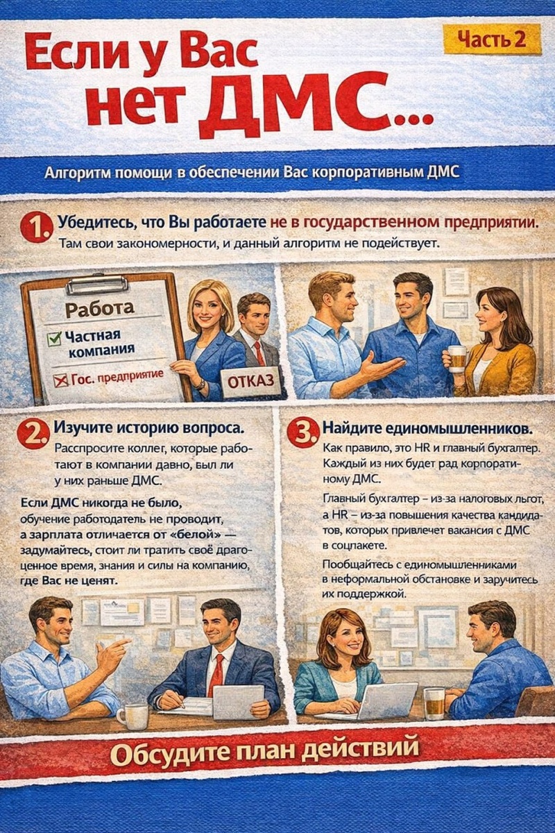Алгоритм помощи работодателю в обеспечении Вас корпоративным ДМС.