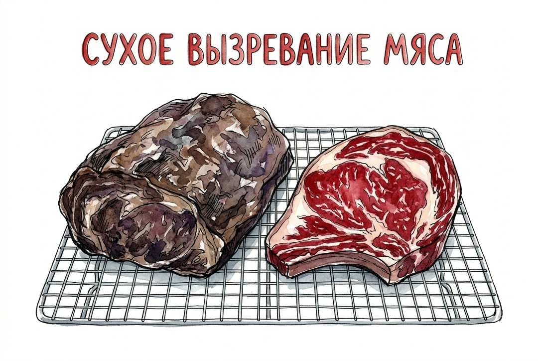 Впереди — захватывающее путешествие в мир науки и мясных традиций. Для начала изучим два базовых способа созревания, а после — раскроем всю подноготную этого гастрономического искусства.