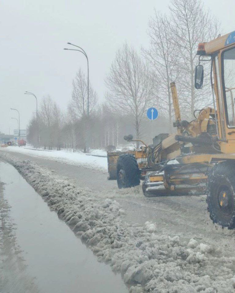 Параллельно техника очищает от наледи проезжую часть.
