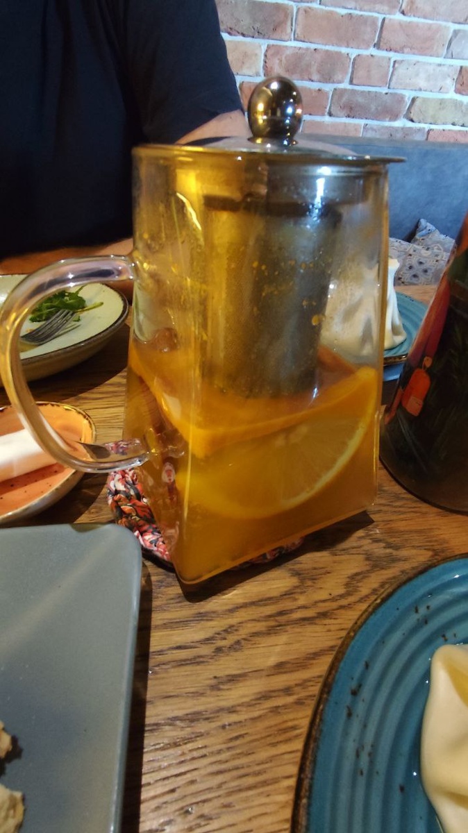 Остались фоточки из Мимино. Мой любимый облепиховый чай с палочками корицы и дольками апельсина. 🍊