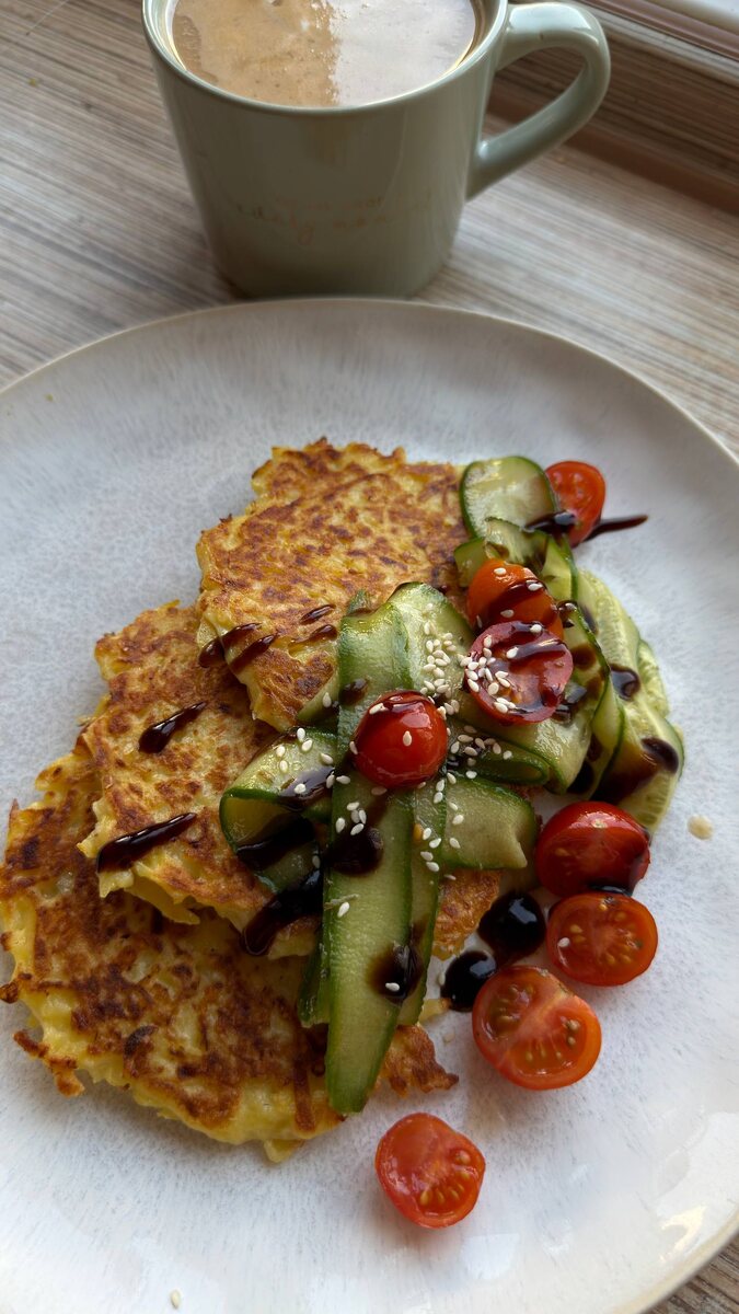 ! И 1,5 кг с собой счастья на боках привезла🤣 Надеюсь это просто отеки… Цель на сегодня: ✅На легке 10т шагов ✅вода 1,5 литра ✅и вернуться в рацион Завтрак: картофельные драники с овощами Обед: куриный супчик без хлеба Ужин: овощи+филе индейки на гриле Порции до 300 гр! Сегодня без сладкого( Драники: 3 картофеля натереть 1 яйцо Соль по вкусу Чесночек Сыр немного 1 ст ложка муки Жарим на сковороде. Огурец нарезала слайсами +черри (соус: 1 ч ложка рисового укусуса+1ч ложка соевого соуса +щепотка соли+ щепотка сахара) 5 мин в маринаде и на драники Вах Вах вкуснотищааааа! ➡️Все сохраняю в ВК там же и сторис ➡️ MAX