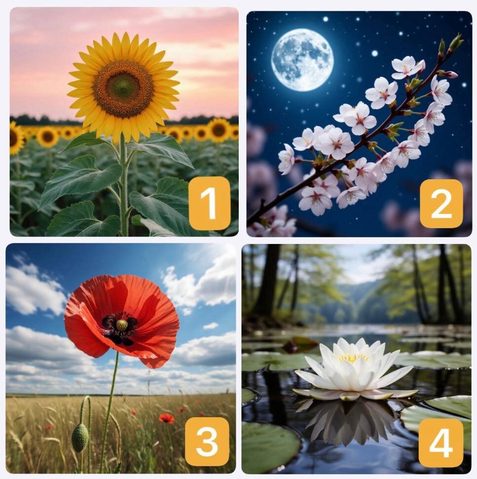 Сегодня я предлагаю интуитивно выбрать наиболее привлекательный цветок, чтобы узнать, какая природная энергия является вашим главным двигателем по жизни. Какая картинка сразу приковала ваш взгляд? Запомните ее номер и только потом читайте расшифровку. РАСШИФРОВКА ТЕСТА Если вы выбрали картинку 1 «Подсолнух», ваша ведущая энергия: активность, подвижность, оптимизм. Вы как живой источник энергии, которая направлена вовне: на общение, движение, достижение целей. Ваша психика подвижна, вы быстро переключаетесь и адаптируетесь. Ваши сильные стороны: общительность, жизнерадостность, работоспособность, лидерские задатки, умение вдохновлять других и не падать духом. Вы тянетесь к свету (успеху, новизне, людям) и сами излучаете тепло. Ваша тень (зона роста): поверхностность (можете не углубляться в детали), непостоянство, зависимость настроения от внешних успехов. Вам может не хватать усидчивости для монотонной работы. Если вы выбрали картинку ️2 «Нежная сакура», ваша ведущая энергия: глубина,