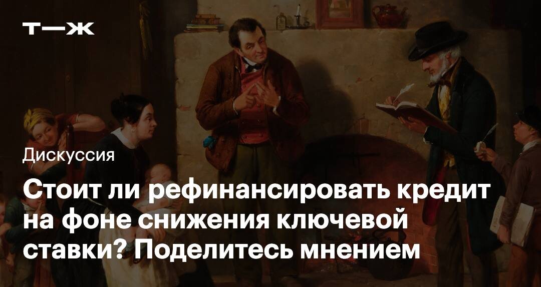 Еще у нас есть потребительский кредит под 19% — брали два года назад, чтобы добавить денег на покупку машины. Пока переоформлять его невыгодно: банки предлагают почти те же условия. А знакомый, взявший кредит в неудачное время под 24%, уже переоформил его по ставке 19%. Благодаря этому ежемесячный платеж снизился на 6 000 ₽, а переплата — на 330 000 ₽. А вы планируете рефинансировать кредит в ближайшее время? Или хотите подождать более выгодных условий? Поделитесь с нами: https://t-j.ru/inv-tg/refinance-when-rate-declines/