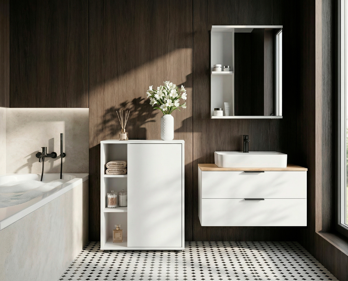Маленькая ванная почти всегда кажется темнее, чем есть на самом деле, даже если плитка светлая. Проблема обычно не в цвете, а в перегрузе. Вот что реально помогает сделать её светлее и без ремонта. 1. Освободить поверхности Чем больше флаконов, баночек и мелочей на виду, тем тяжелее ощущается пространство. Оставьте только то, чем пользуетесь каждый день, остальное — в ящики.