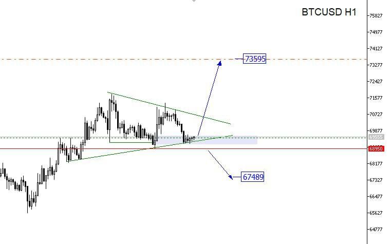 Два сценария , пробую лонг от нижней границы треугольника