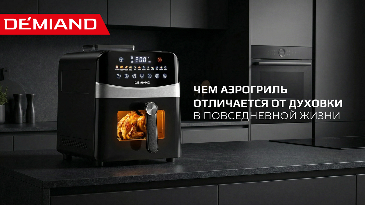 Вы наверняка хотя бы раз задумывались: а стоит ли покупать аэрогриль, если дома уже есть духовка? Или наоборот — может, аэрогриль полностью заменит громоздкий духовой шкаф? Давайте разберемся вместе и, может быть, попробуем выявить победителя в этом мини-противостоянии. Главное отличие — в принципе работы Духовка нагревает воздух постепенно внутри камеры с помощью ТЭНов (непосредственно трубчатых энергонагревателей). Воздух прогревается постепенно, и само блюдо готовится за счёт окружающего тепла. Аэрогриль работает иначе. Мощный вентилятор гоняет горячий воздух по компактной камере с высокой скоростью. Именно поэтому аэрогриль часто называют «конвекционной печью», однако не стоит ставить между ними знак равно. Печь медленнее нагревается и, соответственно, дольше запекает. И на практике это значит одно: аэрогриль однозначно готовит быстрее. В загруженный будний вечер, когда хочется поужинать побыстрее, эта разница ощущается очень сильно. Вы тратите вдвое меньше времени: так, куриные кр
