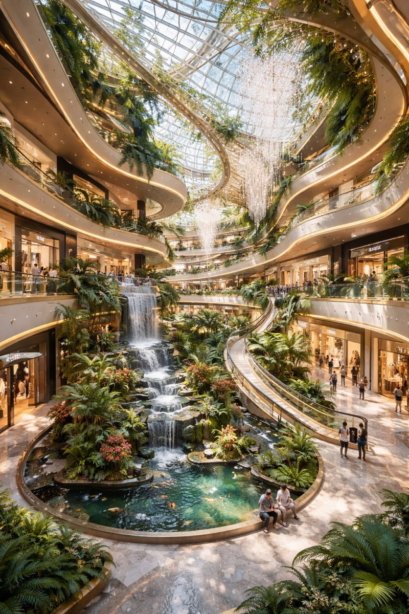 Покажи мне картинку самого умопомрачительного дизайна интерьера торгового центра, чей дизайн нравится всем и вызывает восторг.