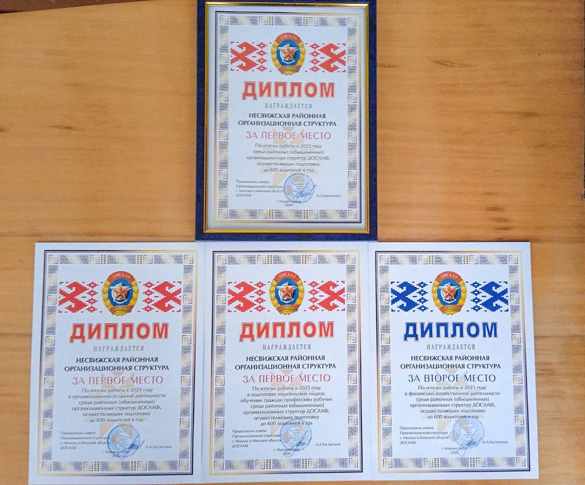 ! ✔️ На Х Пленуме Организационной структуры г. Минска и Минской области ДОСААФ по итогам работы за 2025 год Несвижская районная организационная структура ДОСААФ, среди районных (объединенных) организационных структур ДОСААФ, осуществляющих подготовку до 600 водителей в год, награждена: 🏆 Переходящим кубком и Дипломом за I место; ⭐️ Дипломом за I место по подготовке водительских кадров, обучении граждан профессиям рабочих; ⭐️ Дипломом за I место по организационно-уставной деятельности; ⭐️ Дипломом за II место по итогам работы в финансово-хозяйственной деятельности; 👉 самый главных приз — учебный автомобиль LADA GRANTA SEDAN.