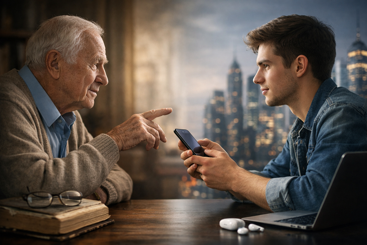 Фото: ИИ Здравствуйте, уважаемые читатели) Недавно на одном из форумов мне на глаза попался очень жизненный крик души. Молодой человек задал вопрос: «Почему считается, что старшее поколение мудрое и нужно у них учиться? Ведь большинство из них как будто живёт в 70-80-х годах и не понимает, что мир изменился. Но всё равно считается, что именно они знают, как лучше». Этот вопрос бьет в самую точку. Конфликт отцов и детей существовал всегда, но сегодня это уже не просто разница во взглядах на длину юбки или выбор музыки. Это столкновение двух абсолютно разных эпох. Давайте разберем этот феномен по полочкам и расставим точки над «i». Фото: ИИ В нашем обществе исторически заложен стереотип: седина на висках автоматически приравнивается к глубокому пониманию жизни. Но давайте смотреть правде в глаза. Возраст это всего лишь хронологический показатель того, сколько времени человек провел на этой планете. Мудрость же это результат отрефлексированного, осознанного опыта. Если человек 40 лет про