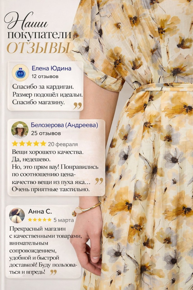 Мы всегда читаем ваши отзывы и очень ценим, когда вы делитесь своими впечатлениями о покупках. Ваш опыт — это честная рекомендация, которой доверяют. Если у вас есть пара минут, будем очень благодарны вашим отзывам на картах и в 2 гис: Яндекс: https://yandex.ru/maps/-/CLsTeLoP 2ГИС: https://go.2gis.com/Q5dEo Яндекс: https://yandex.ru/maps/-/CLsTiIKn 2ГИС: https://go.2gis.com/9O6lQ Яндекс: https://yandex.ru/maps/-/CLsTmKYt 2ГИС: https://go.2gis.com/Bsxwc Будем рады, если поделитесь своими впечатлениями прямо в комментариях под этим постом. Расскажите, что вы покупали и как вам вещи в носке, что хотели бы видеть в новых коллекциях. Мы читаем каждый отзыв ❤️