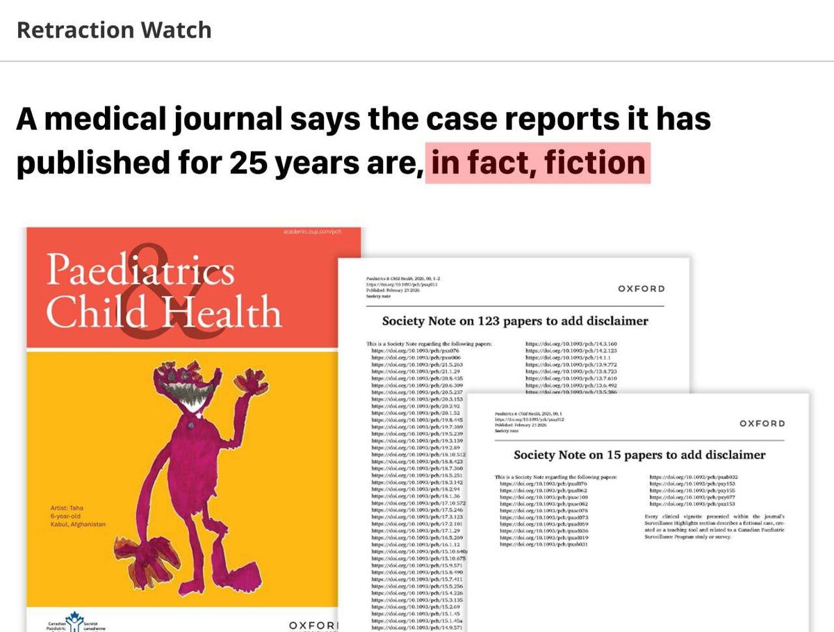 Издателем был Oxford University. Всего выпустили 138 статей по детской медицине: с симптомами, статистикой и выводами врачей. Учёные ссылались на них и считали всё реальными случаями. врачебные фанфики, по которым лечили детей 🙂 🧠TechObserve